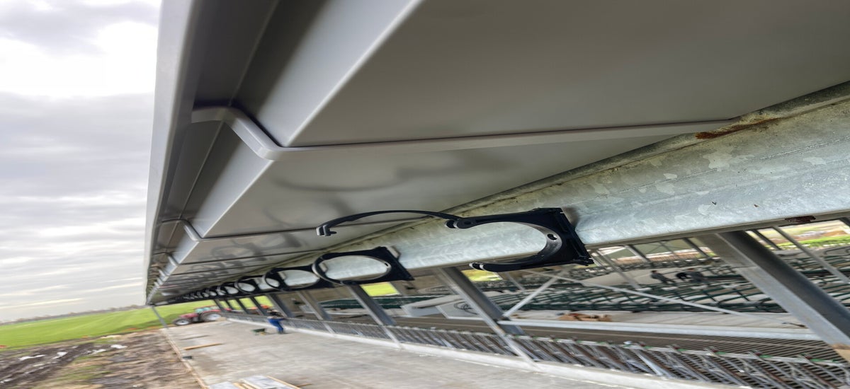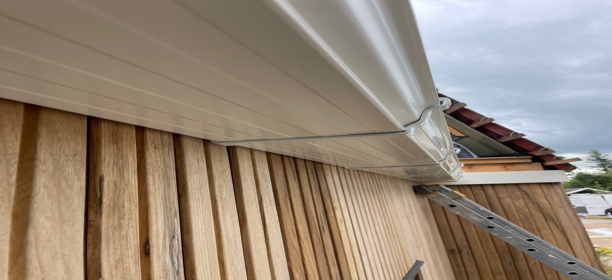 We monteren de beugels, goten en de gewenste HWA-afvoer